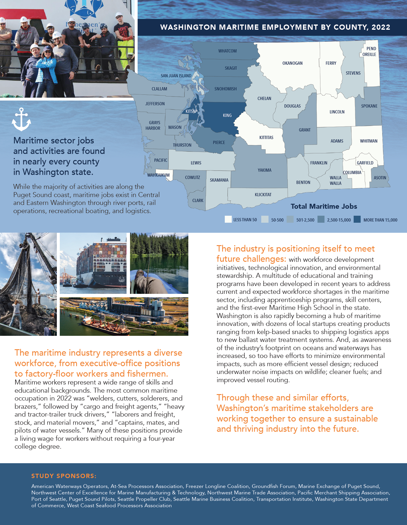 - Whatcom County: Reporting on jobs identified 3,600 direct jobs + 2,800 indirect jobs totaling 6,400 maritime sector jobs!