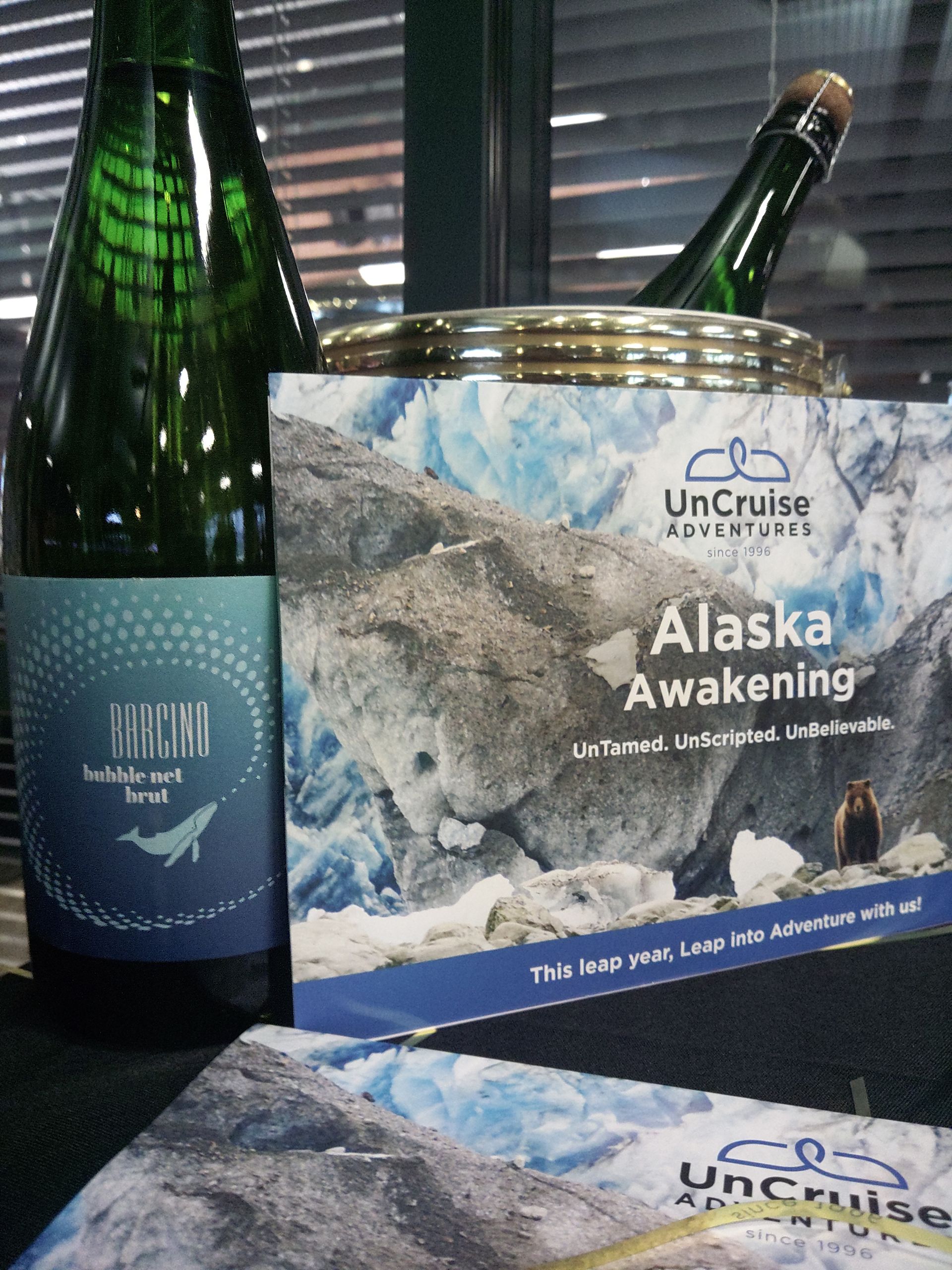 Drayton Harbor Oyster Company hosted their oyster bar with fresh, local oysters right from Blaine, while the Monk Slippers band, led by Seafood Producer's Co-op's own Kendall Whitney set the mood, filling the hall with smooth jazz that evoked the elegance of Old Hollywood as it drifted across the silent auction tables. Guests enjoyed the bar where a few of our own Bellingham Tender vessel operators were mixing and pouring drinks for the crowd at 'The Tender Bar' (they even made a custom lit sign just for the event!). This year we proudly featured Samson Winery's Syrah and Chardonnay, and UnCruise Adventures' own Bubblenet Brut Cava for guests arriving to the event, as a premiere toast. Also helping to provide libation was Stones Throw Brewing from Fairhaven, and Kulshan Brewing.