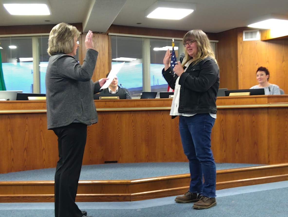 Commissioner Carly James was officially sworn in at the Port Commissioner's open public meeting yesterday evening, alongside incumbent Commissioner Michael Shepard, who is now seeking a State senate seat.